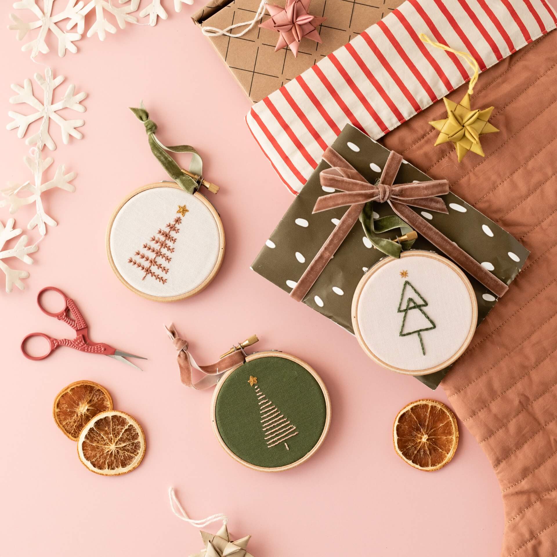 Christmas stick and stitch embroidery templates - Stockings, bows and Christmas tree