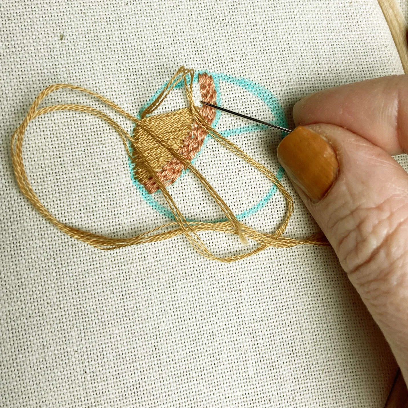 We use three stands of embroidery thread all the way through this pattern so split your embroidery thread down for each step. For tips and tricks on how to do this without getting in a tangle please see our hints and tips at the bottom of this post.